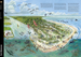 park brochure showing a wild peninsula with different plants and animals labeled on the left side a drawing of fort matanzas