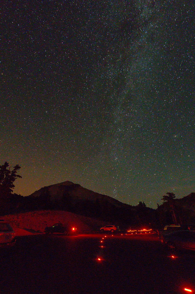 Bumpass Hell parking area, night sky with stars