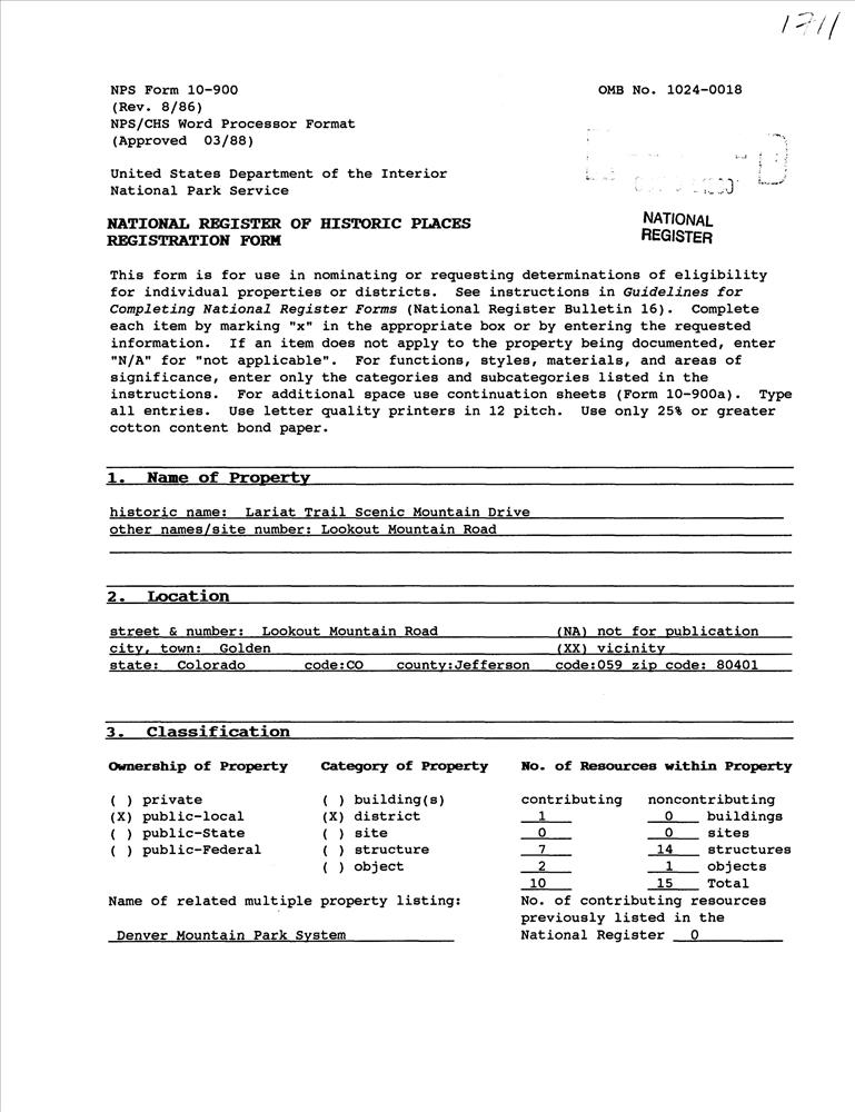 Golden ; Lookout Mountain Rd. S of US 6 to Golden Reservoir