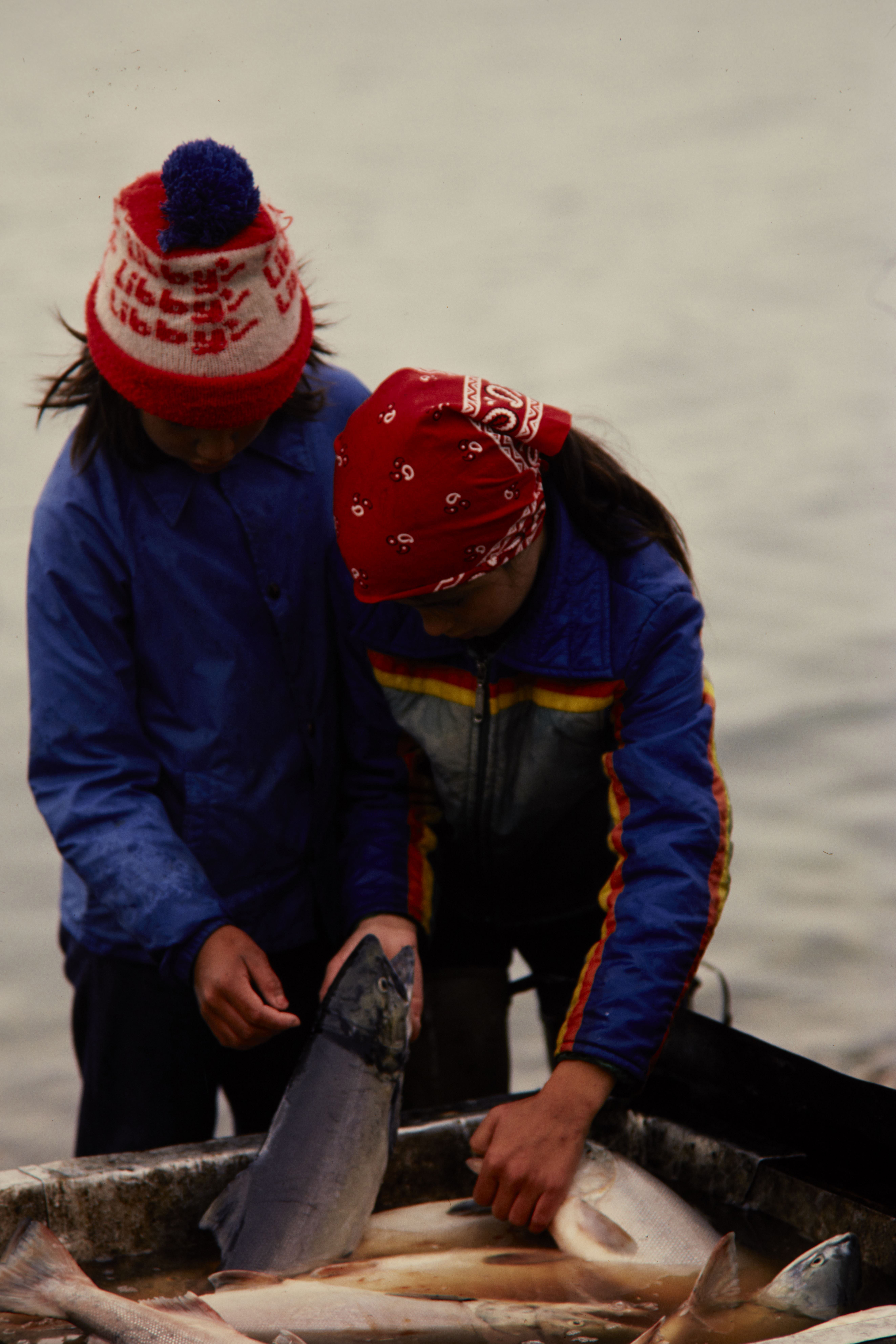 Alaska Natives. Two children at salmon fish camp in the Alaska Region.