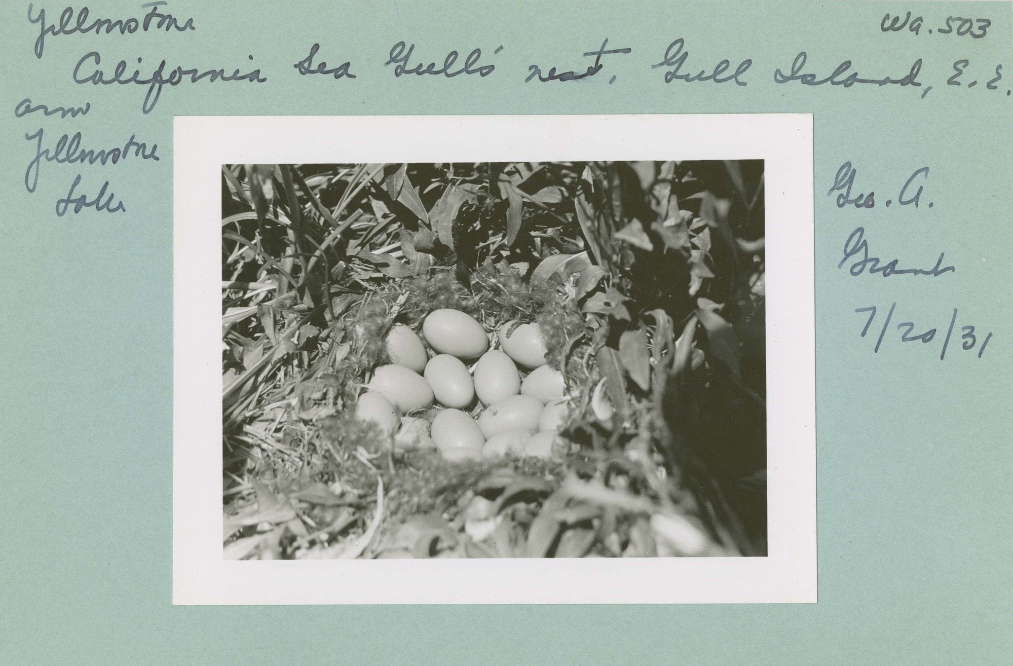 California Sea Gulls' nest. Locality: Yellowstone Lake, Yellowstone National Park. Negative #: 503