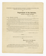 [First page: Printed letter from Department of the Interior, Office of Indian Affairs, Washington, June 6, 1873, to Dr. Thomas Foster of Minnesota, regarding "Instructions to Special Agent for the Collection of 'Statistics and Historical Data Respecting the Indians of the United States.'"]