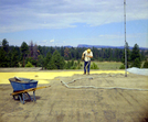 New layer of gravel spread during reroofing project. Bryce Canyon National Park. ; ZION Museum and Archives Image 005.09.05-2of14 ; ZION 15933