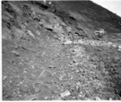 BW photos of rock slides in Kolob Canyons - 110mm. Rock slide over roadway. ; ZION Museum and Archives Image 107_06_21025 ; ZION 15933