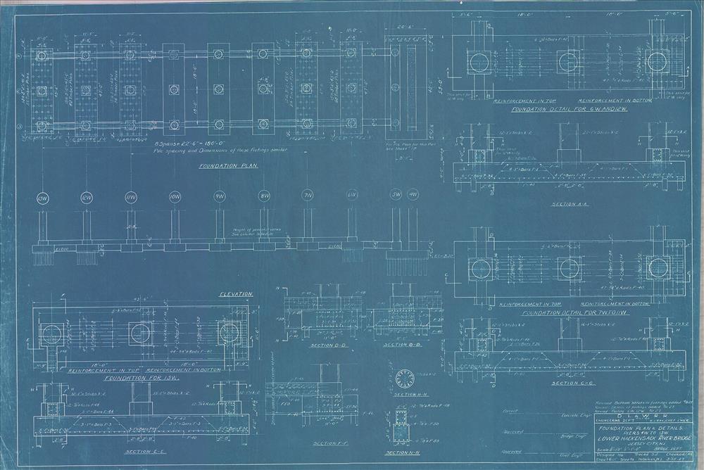 Lower Hackensack River Bridge--Foundation and details--Pier nos. 4W to 13W--Jersey City, NJ [1927.03.15] Sheet no. 6