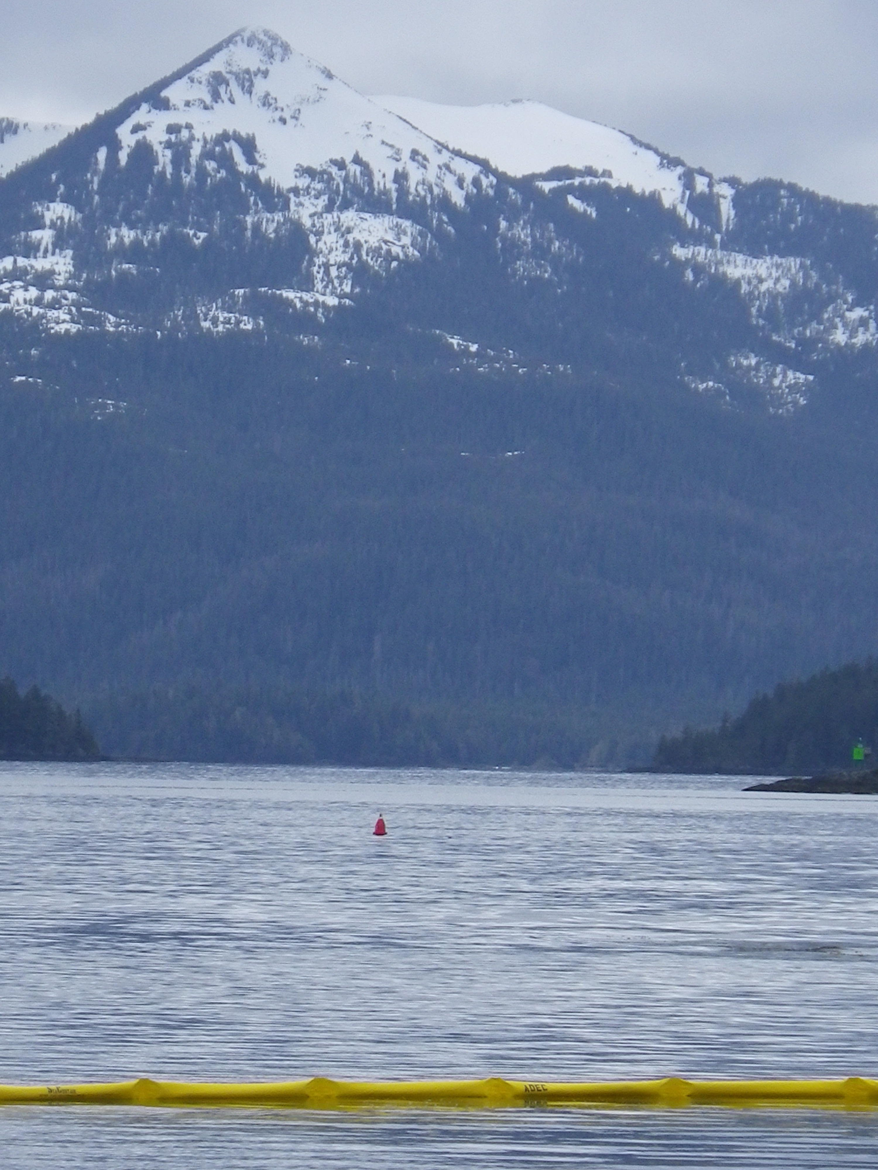 Deployed Oil Boom with Pyramid Mountains