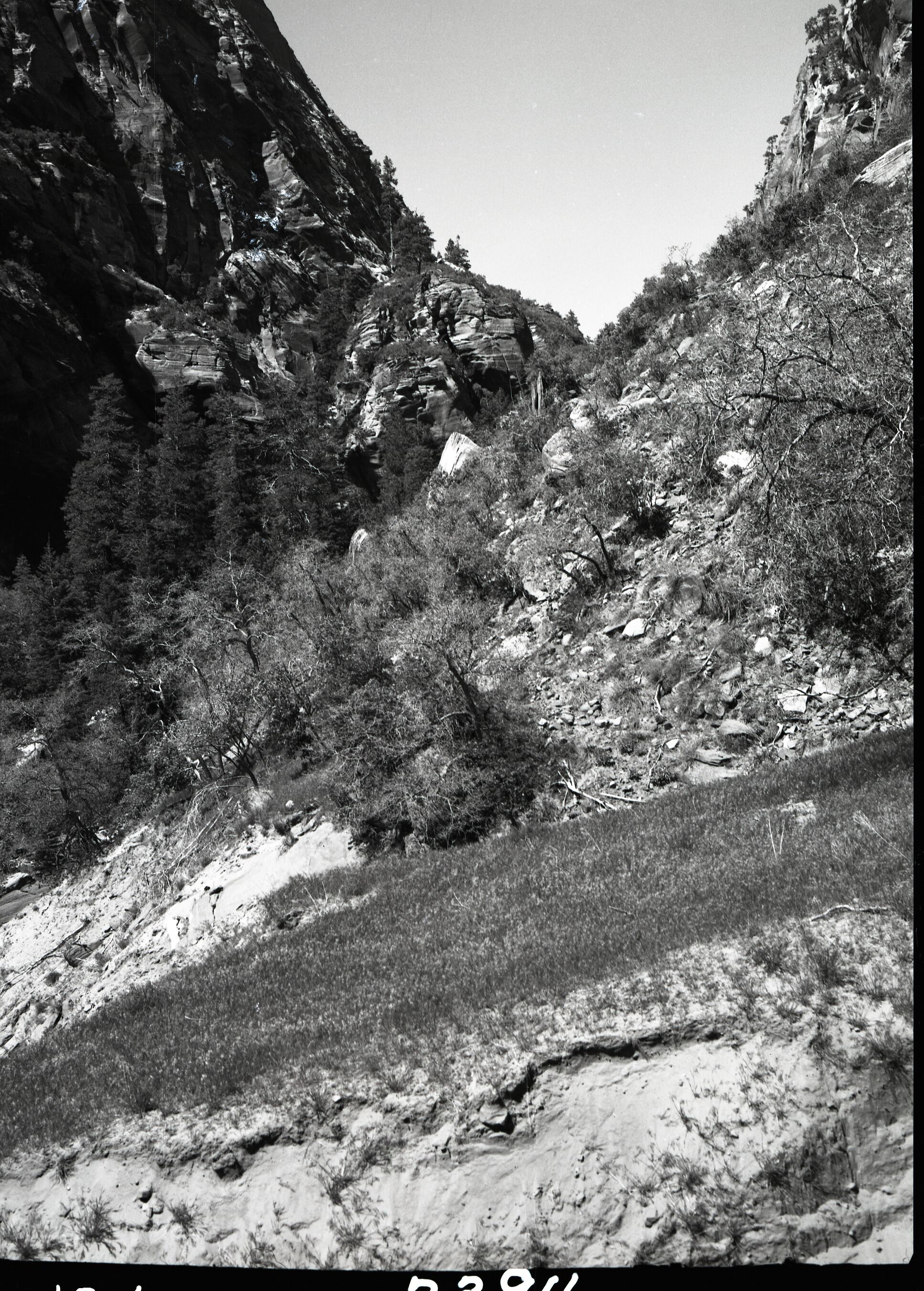Inspection trip into Kolob area and the eroded road built by Evan Lee into Hop Valley. ; ZION Museum and Archives Image 103_02_030 ; ZION 9471