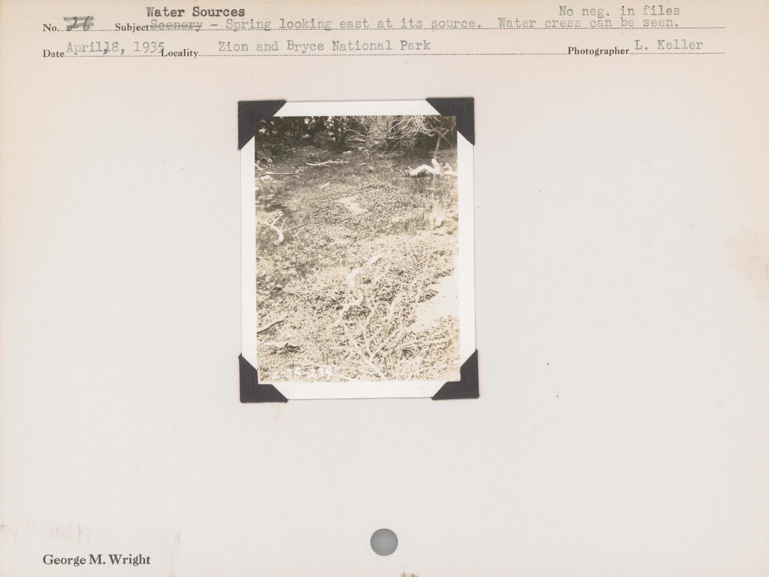 Water sources: Spring looking east at its source. Water cress can be seen. No negative on file. Locality: Zion and Bryce Canyon National Park.