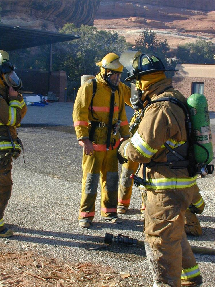 Firefighter crew photos during structural fire training at Mesa Verde National Park, 2001