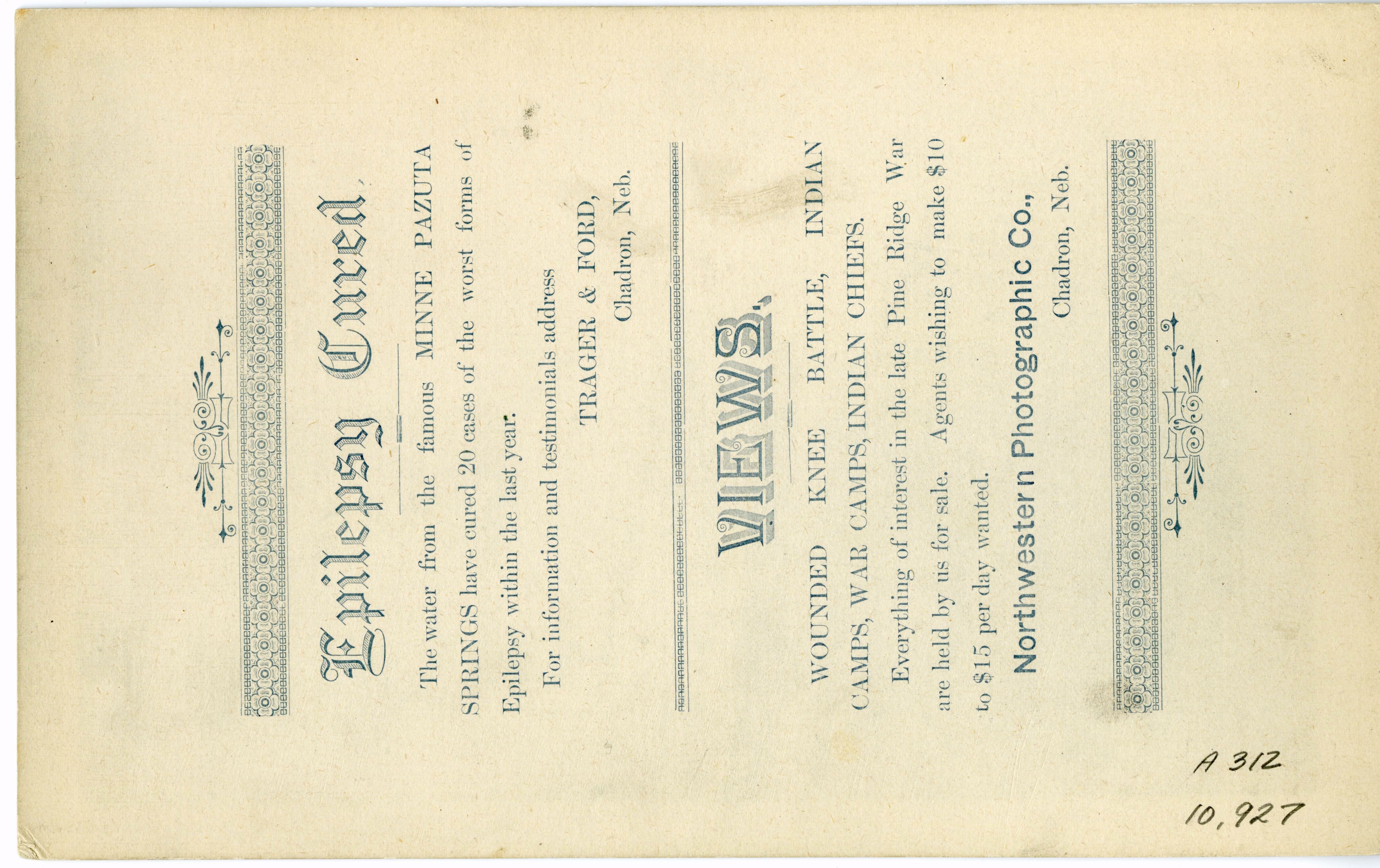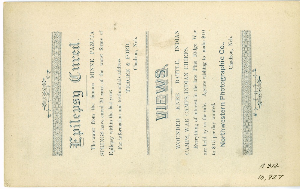 LIBI_00312_10927; A cabinet card photo. This image depicts an army camp of approximately fifty canvas tents. A note in white on the corner reads: “U.S. Camp at Pine Ridge S.D.” This image was produced by an unknown photographer on an unknown date. This is the original image. ; cabinet card photo;Courtesy of the National Park Service, Little Bighorn Battlefield National Monument, LIBI_00312_10927, Unknown Photographer, "'U.S. Army Camp at Pine Ridge, South Dakota," date unknown.