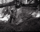 Ranger Nick Nicholson standing on the illegal dirt road from Potato Hollow to Kolob Creek, bulldozer graded road section on park land. ; ZION Museum and Archives Image 101_02_005 ; ZION 7973