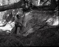 Dirt road from Potato Hollow to Kolob Creek bulldozer blade attempted to push fallen tree. ; ZION Museum and Archives Image 101_02_002 ; ZION 8289