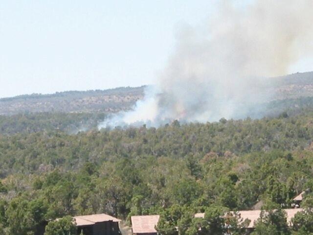 Photos of white smoke indicating start of the fire on the first day of Long Mesa Fire, Mesa Verde National Park, July 29, 2002