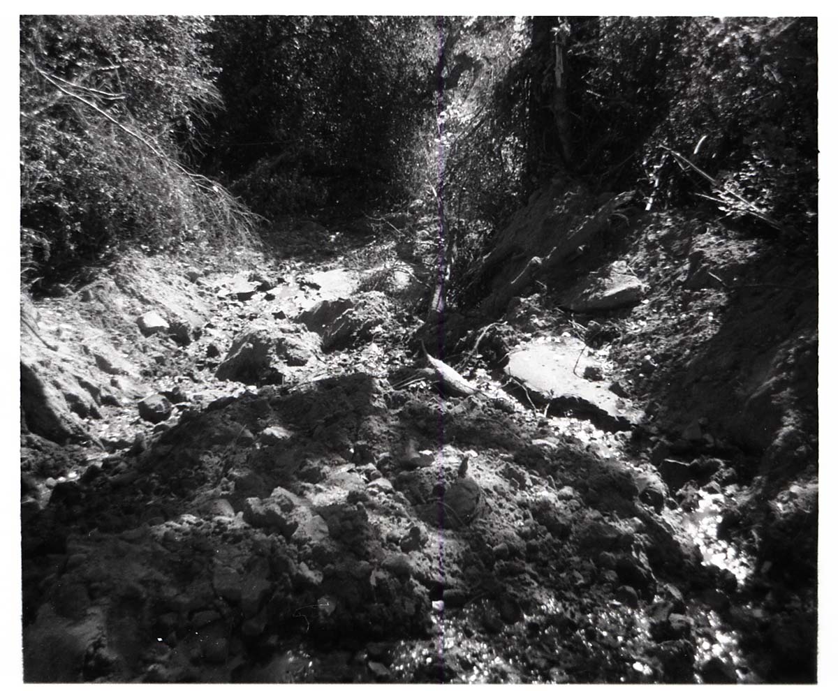 BW photo of a rock slide at the gateway to the narrows. ; ZION Museum and Archives Image 107_06_08003 ; ZION 15933