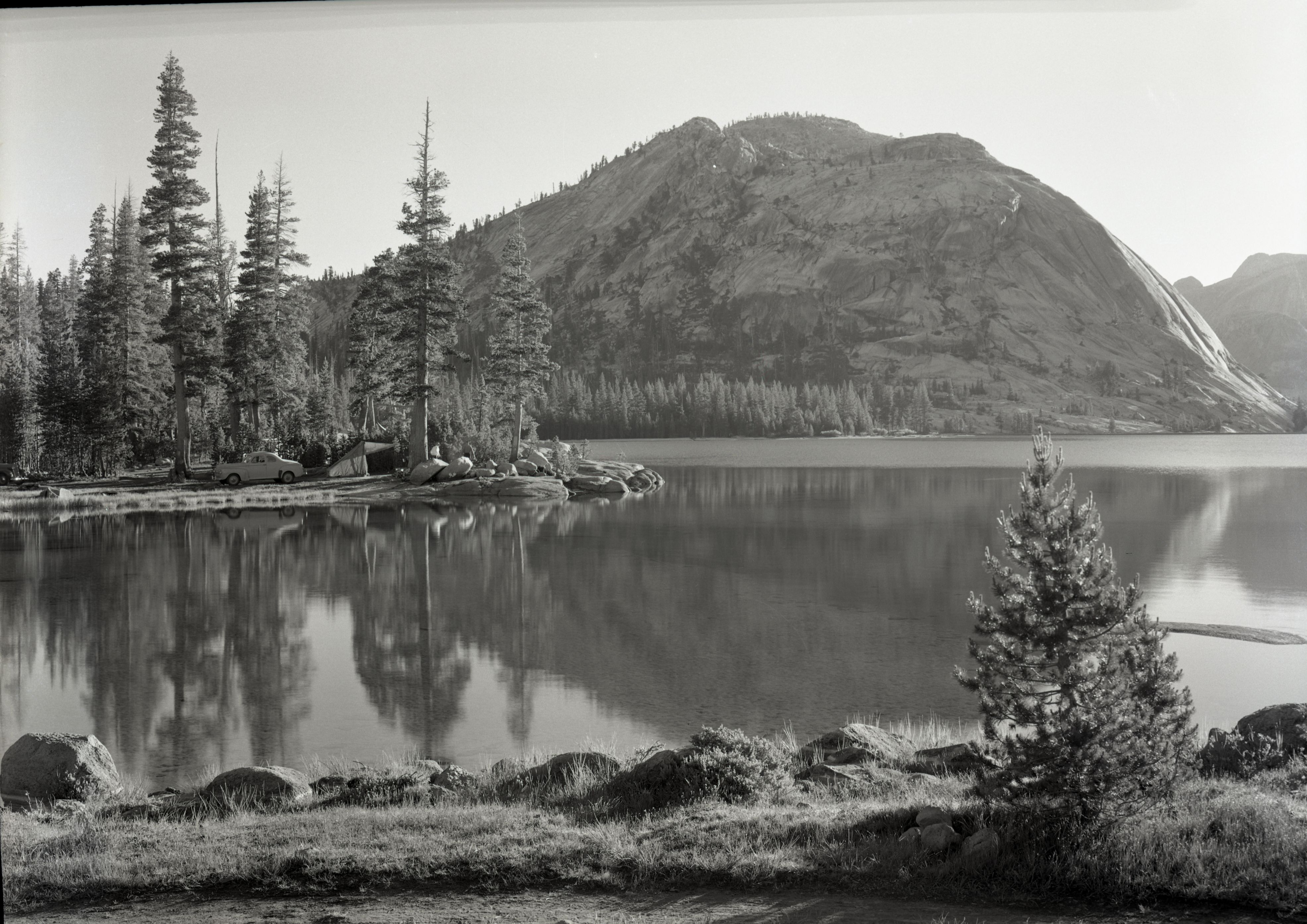 Copy negative of Watkins (?). View of Tenaya Lake. Copied from originals loaned by Francis P. Farquhar.