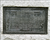 The rough-hewn base measures 7'4" x 4'2" and supports a block that is rough-hewn on 3 sides for a total height of 5'6". The smooth front bears an inscription, the rear a bronze plaque. The top angled section reads "ILLINOIS" in raised letters.