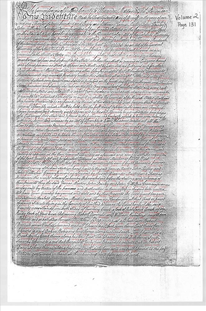 Document related to historic land ownership in the vicinity Guilford Courthouse.