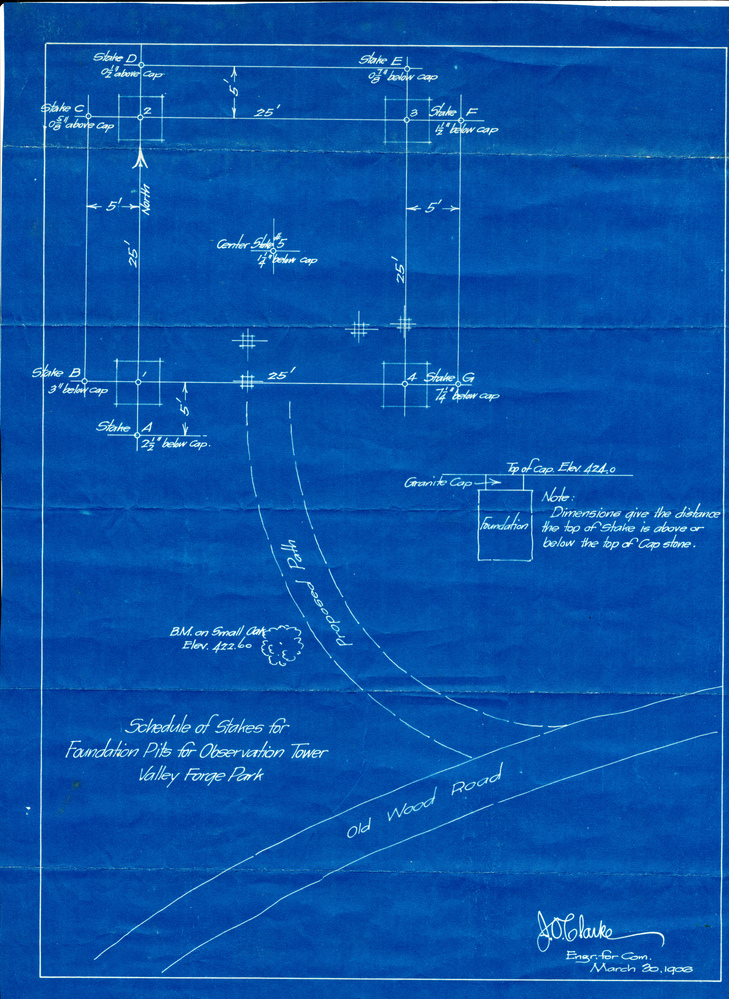 Schedule of Stakes for Foundation Pits for Observation Tower, Valley Forge Park