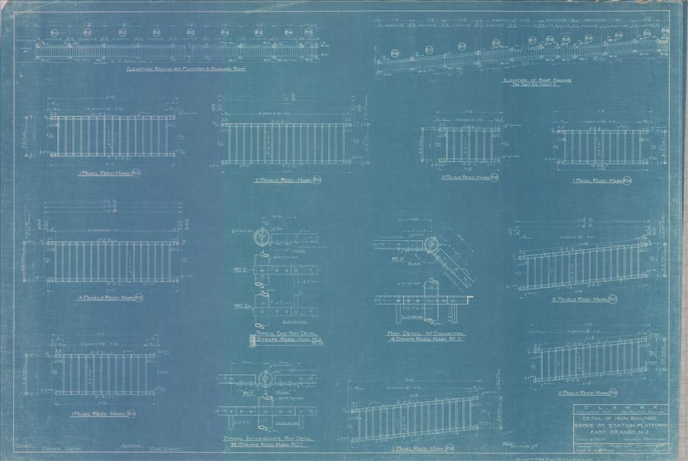 Grove Street station platforms--Detail of iron railings--East Orange, NJ [1922.01] Sheet no. 6 of 8