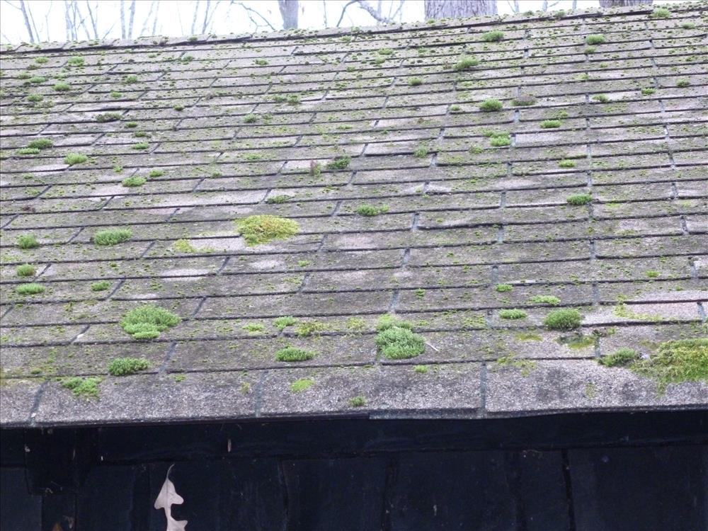 Pictures showing damage on roofs of thirteen structures in Cabin Camp 3 A-Unit at Prince William Forest on December 2011.