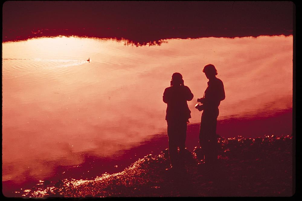 Visitor's at the edge of a lake