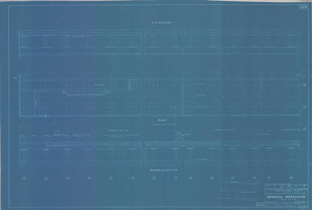 026 Terminal Warehouse--South side Viaduct plan and elevations, spans 1 to 33--Jersey City, NJ [1929.10.04] Sheet no. 226
