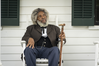 Frederick Douglass (Nathan Richardson) sits on the porch of the Stanton House.