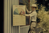 Fires and Firefighting. Park ranger adjusts a fire danger sign to high.