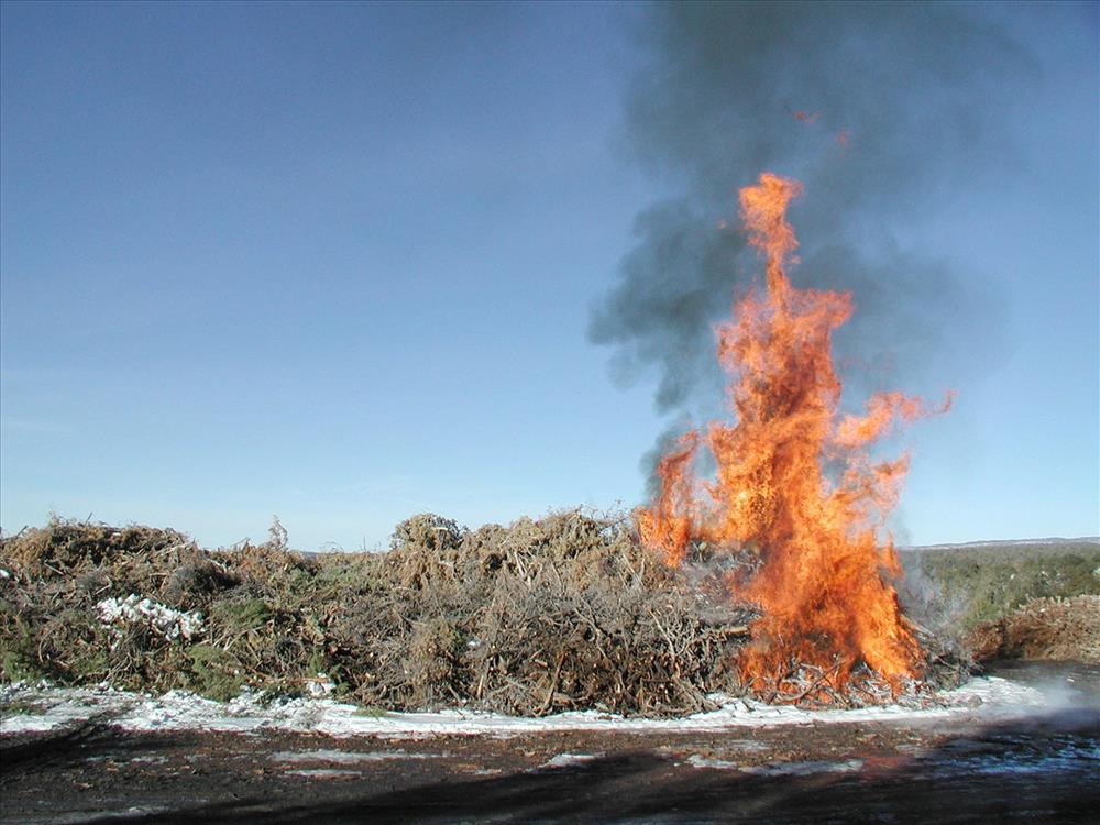 Brush pile burn as part of fuel reduction, Mesa Verde National Park, Jan. 2002