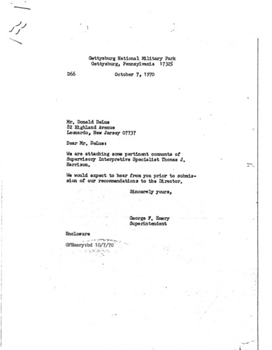 We are attaching some pertinent comments of Supervisory Interpretive Specialist Thomas J. Harrison.