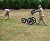 SEAC archeologists push a ground penetrating radar unit over the suspected location of the slave cemetery in order to peek into the ground.