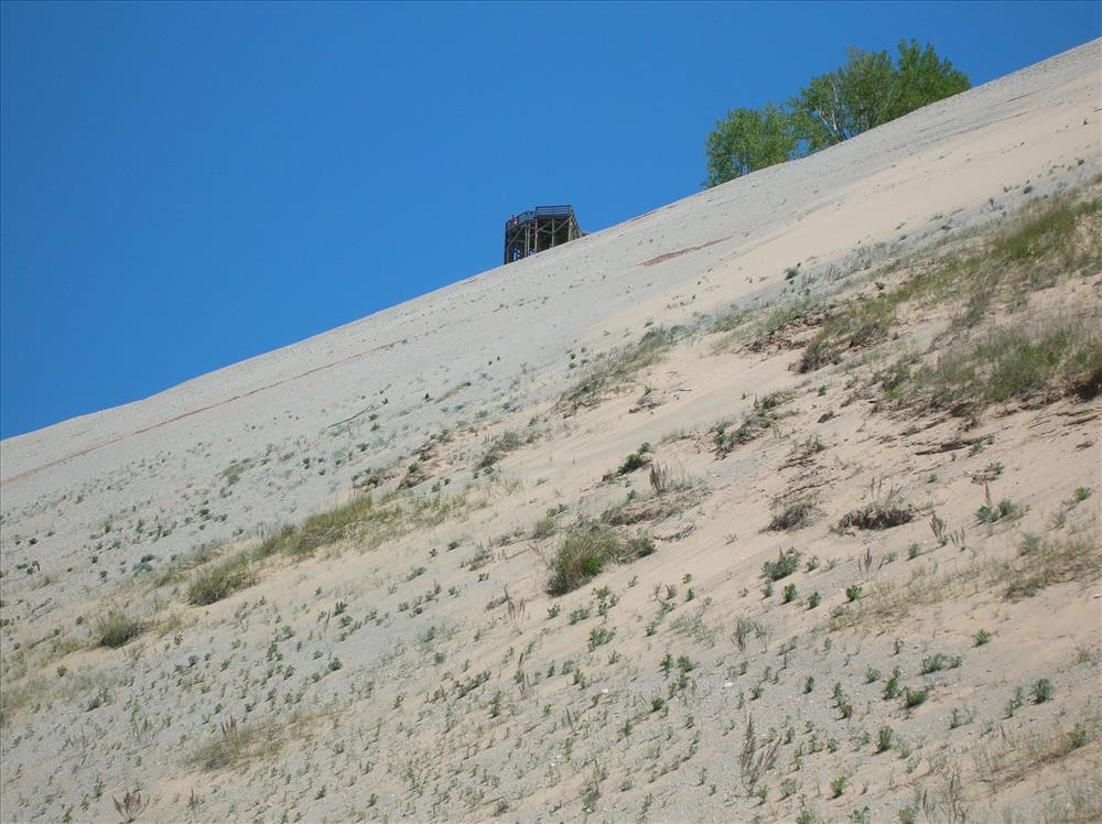 #9 Lake Michigan Overlook Platform or Observation Deck high above the Lake Michigan Beach. Shows erosion from people climbing on the bluff.