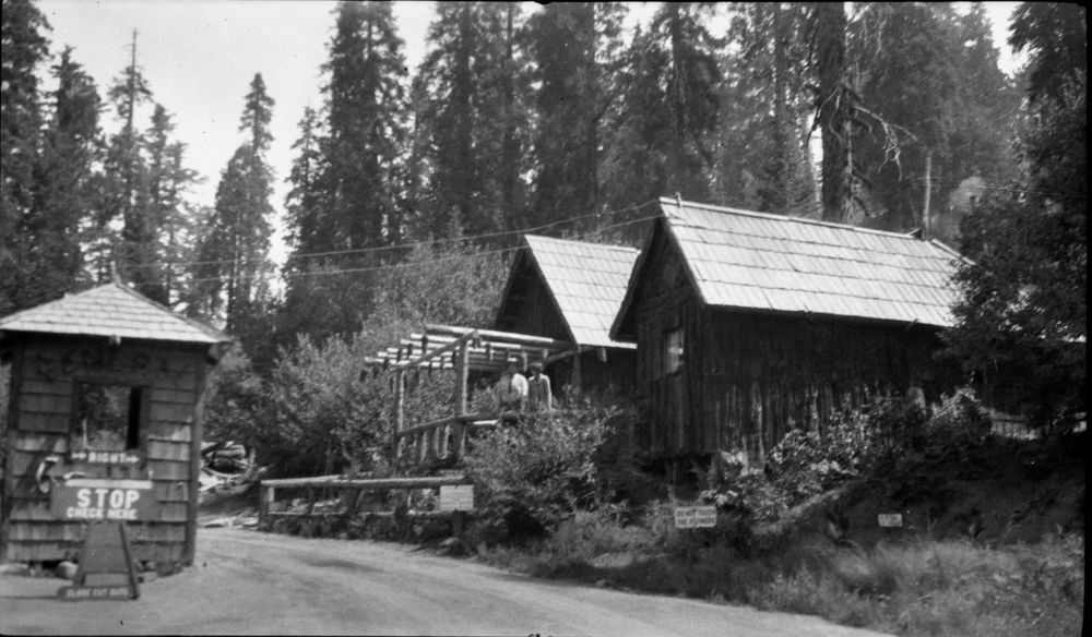 Unknown Photographer, Unknown Date, Grant Grove, KCNP, Buildings and Utilities, entrance station. Individuals unidentified.