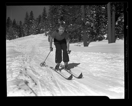 A young woman skiing