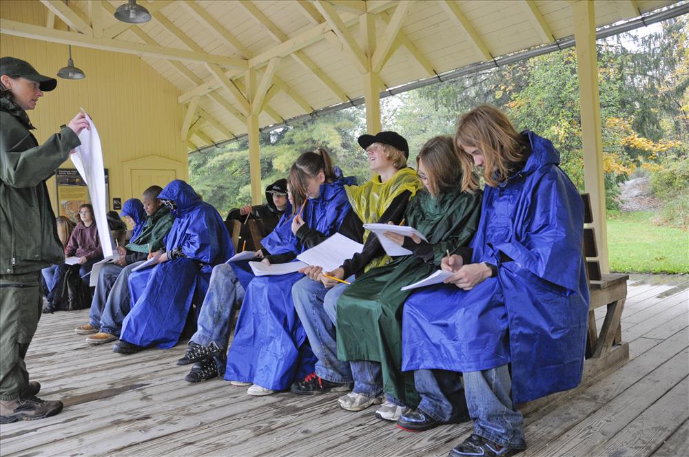 Middle school students are doing a site investigation at Chippewa Creek near Station Road Bridge Trailheadand. They are studying the impacts of suburban development on the local watershed. || The Cuyahoga Valley Environmental Education Center's residential program provides fourth through eighth grade classes an overnight educational experience that integrates science, nature study, environmental issues, and the arts. Students learn natural history and the concepts of watershed, biodiversity, and habitat. In addition, environmental issues and the process of environmental decision-making are explored. The curriculum is designed to meet state standards and teach proficiency skills, especially in science and social studies.