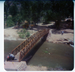 People standing on new Grotto footbridge over the Virgin River. Note riverbank revetments at left. ; ZION Museum and Archives Image 005.06.02-45of53 ; ZION 15933