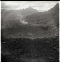 BW photo of rock slide in the maintenance yard. ; ZION Museum and Archives Image 107_06_01001 ; ZION 15933