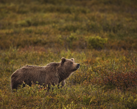 A grizzly bear eats berries north of the park road, near mile 19, on August 23, 2019.