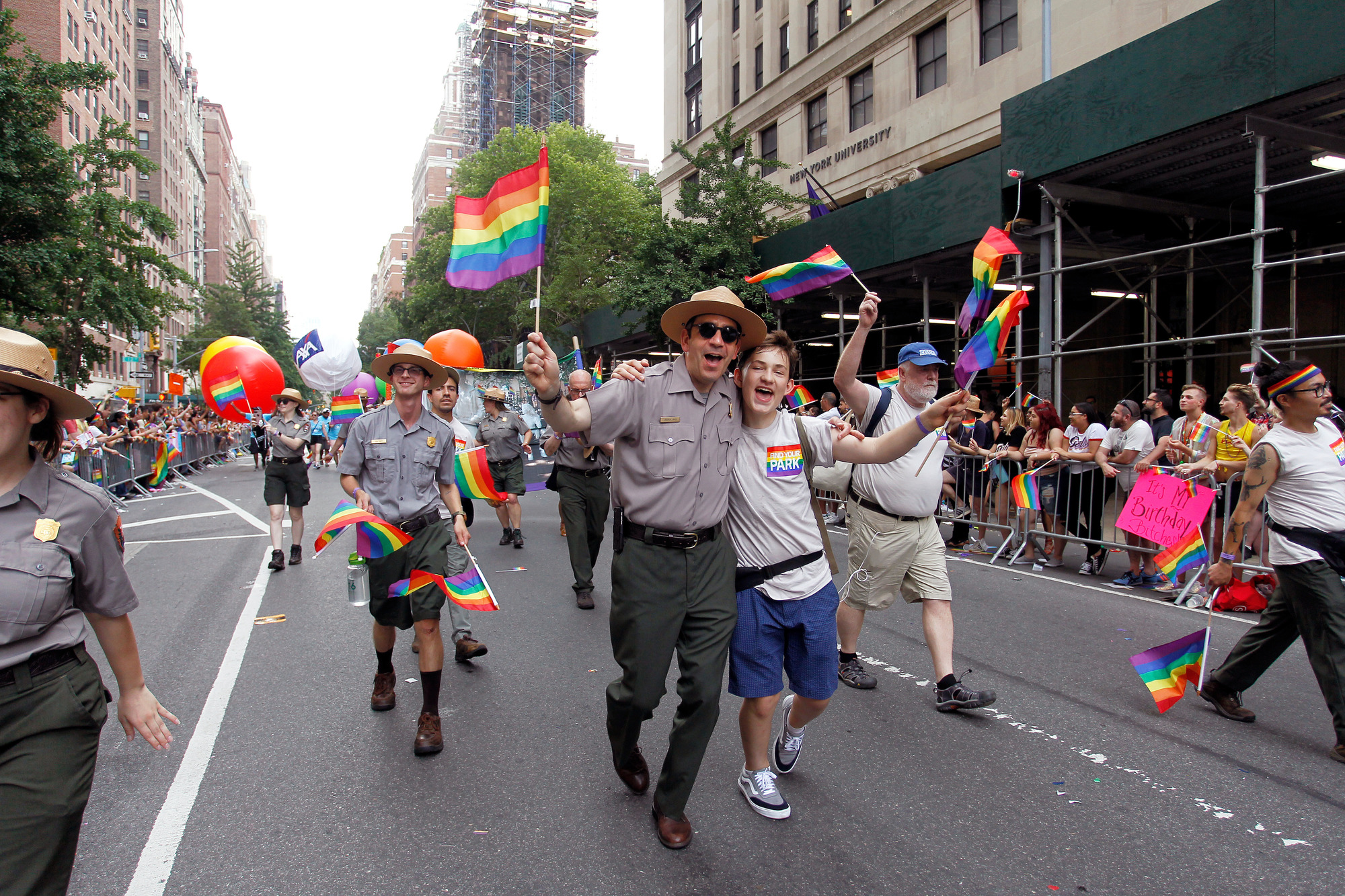 Park rangers and others march in a gay pride parade