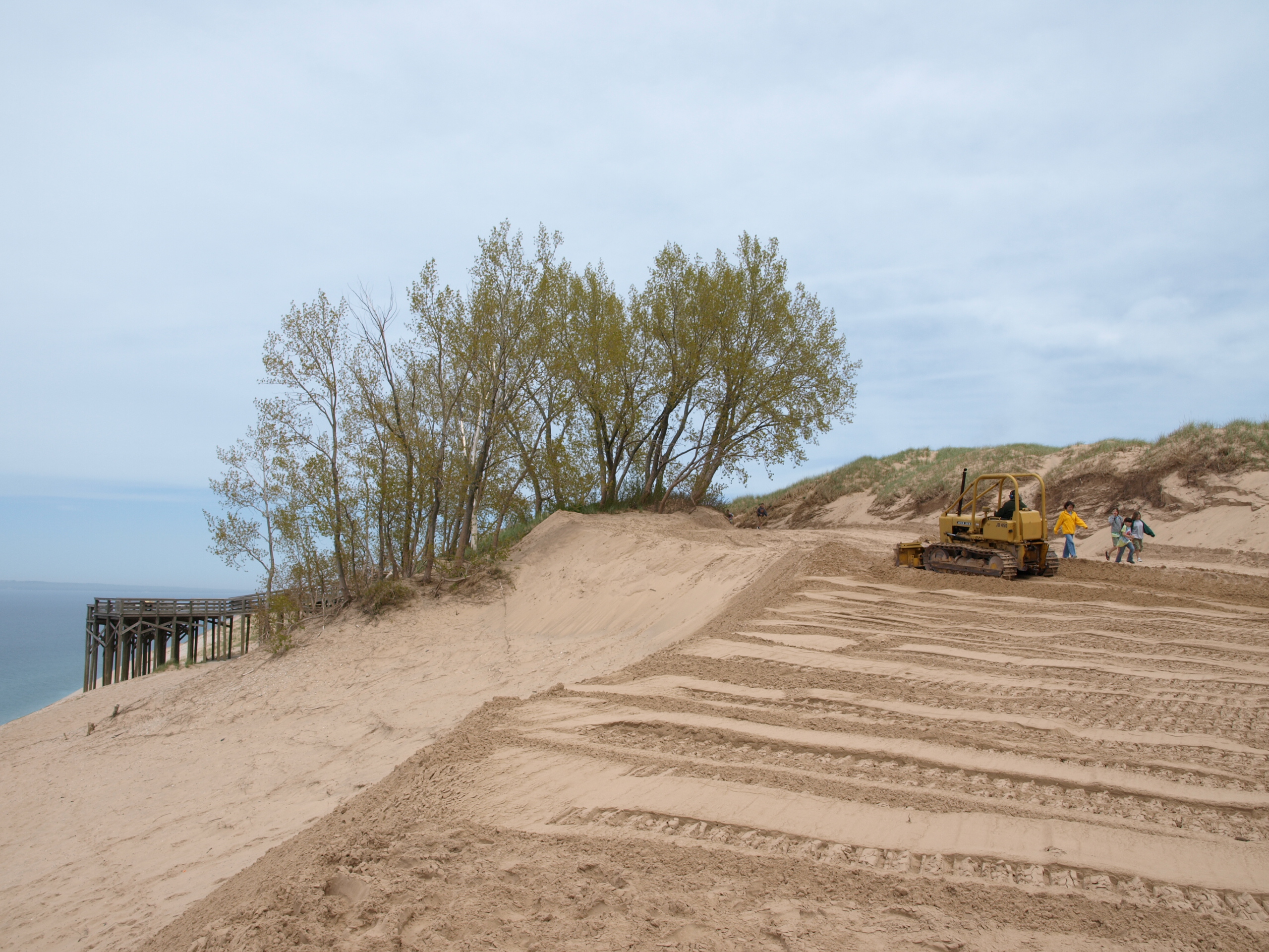 Workers prepare dunes and boardwalk at #9 Lake Michigan Overlook