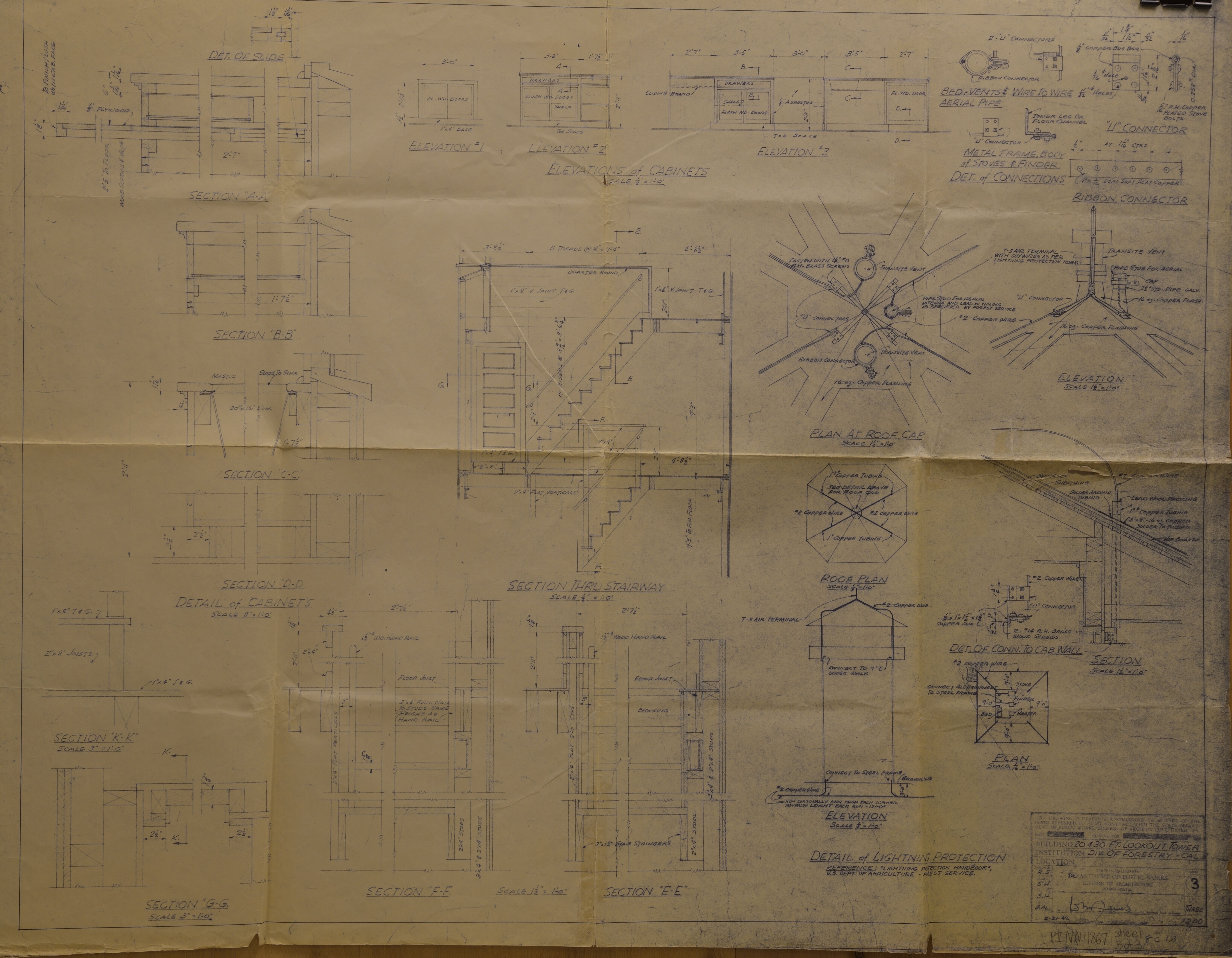 Chalone Peak Fire Lookout Replacement Blueprint 1946 (Sheet 3 of 3)