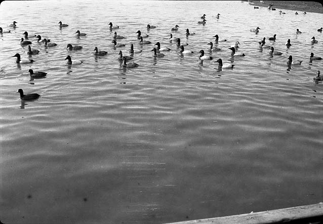 Pintail 3 loafing , scenery, structures, Lake Merritt, Febuary 1, 1930,