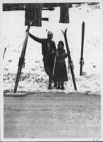 Arthur G. Holmes Collection Album 5: Holmes and Peggy Ann at roadside holding skis
