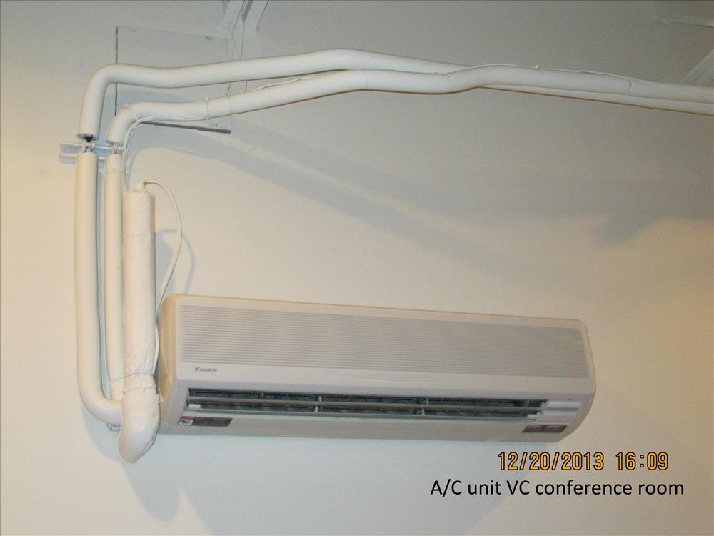Photos show the visitor center's exhibit room, its air-conditioning system, and the VC lobby in December 2013