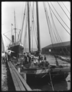 Per note on the enclosure, WAVELET was "unloading salt from the Oliver Salt Works at an unidentified San Francisco wharf." Source: "P - A.E. Eppler 7-30-56".[CR][CR]Image reproduced in John Kemble's book, "San Francisco Bay: A Pictorial Maritime History," p. 84, with the following information: "The schooner WAVELET, built in 1878 by John J. Dirks, was 57 feet long, 20 feet wide, and 4.1 feet deep. A coastwise steamer is moored behind her, and Yerba Buena Island can be seen dimly in the distance. J. Porter Shaw Collection."