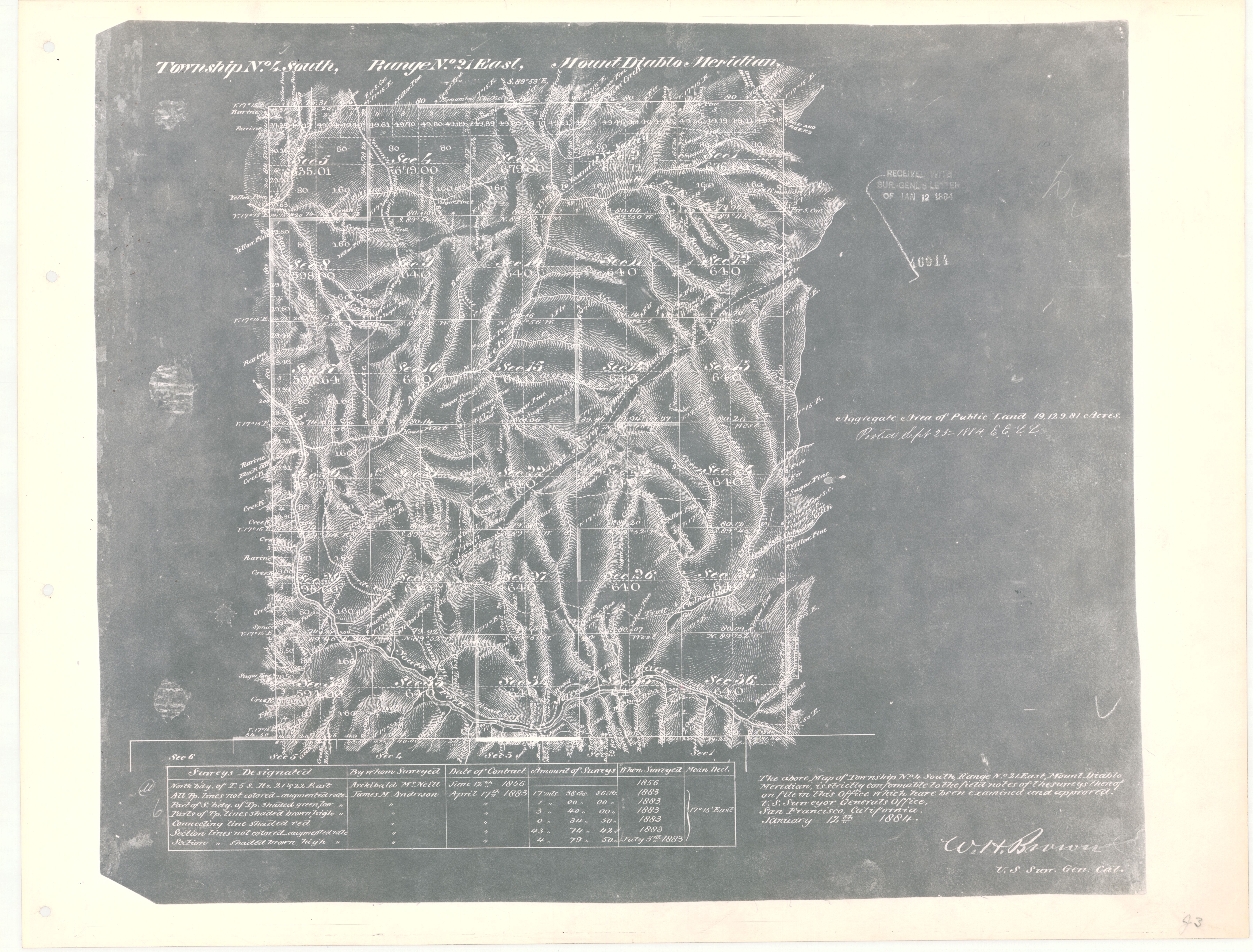 Map of Township No. 4 South, Range No. 21 East, Mount Diablo Meridian Survey