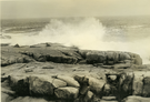 SURF CRASHING AGAINST ROCK.