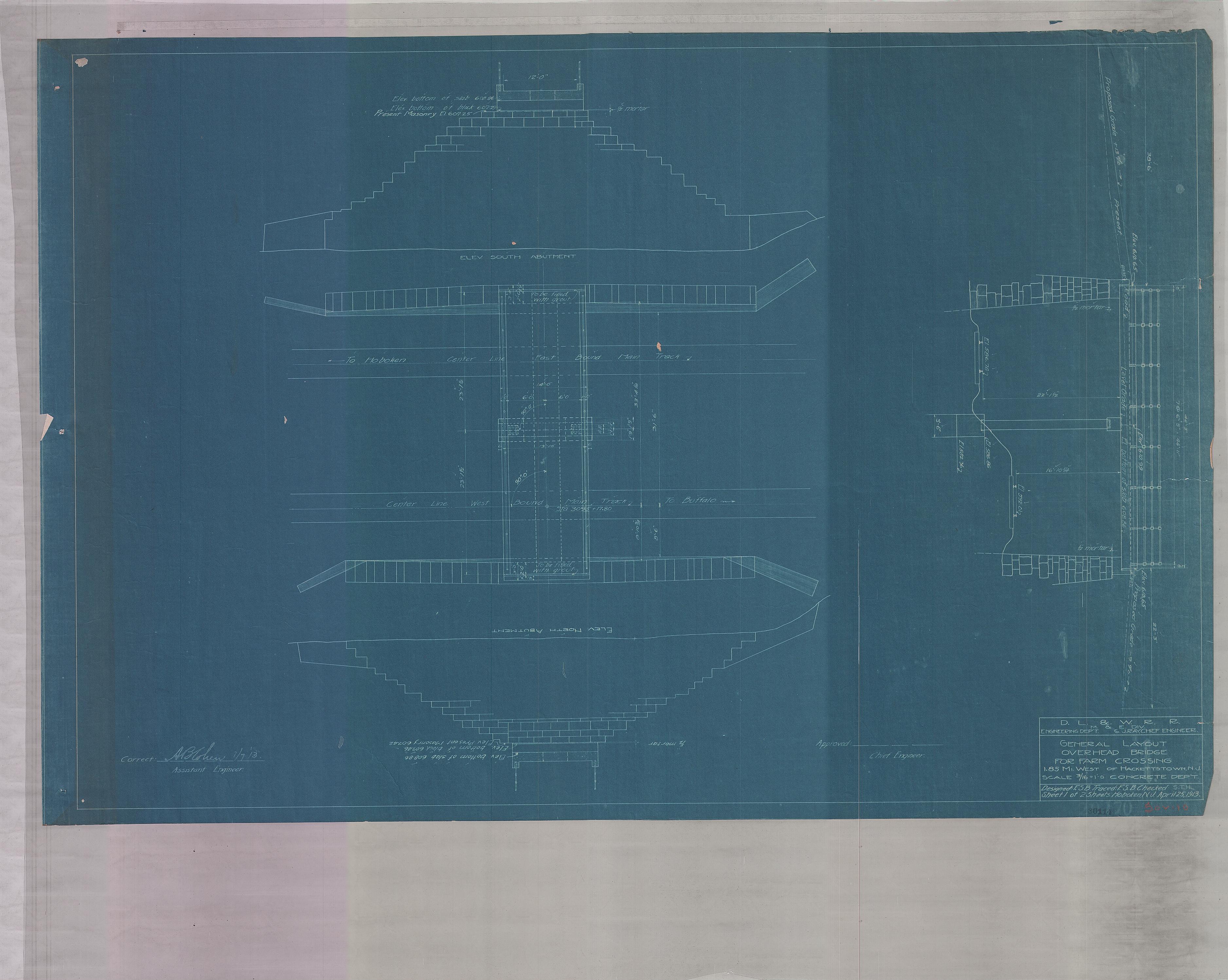 Overhead bridge for farm crossing--General layout--1.85 miles west of Hackettstown, NJ [1913.04.25] Sheet 1 of 2