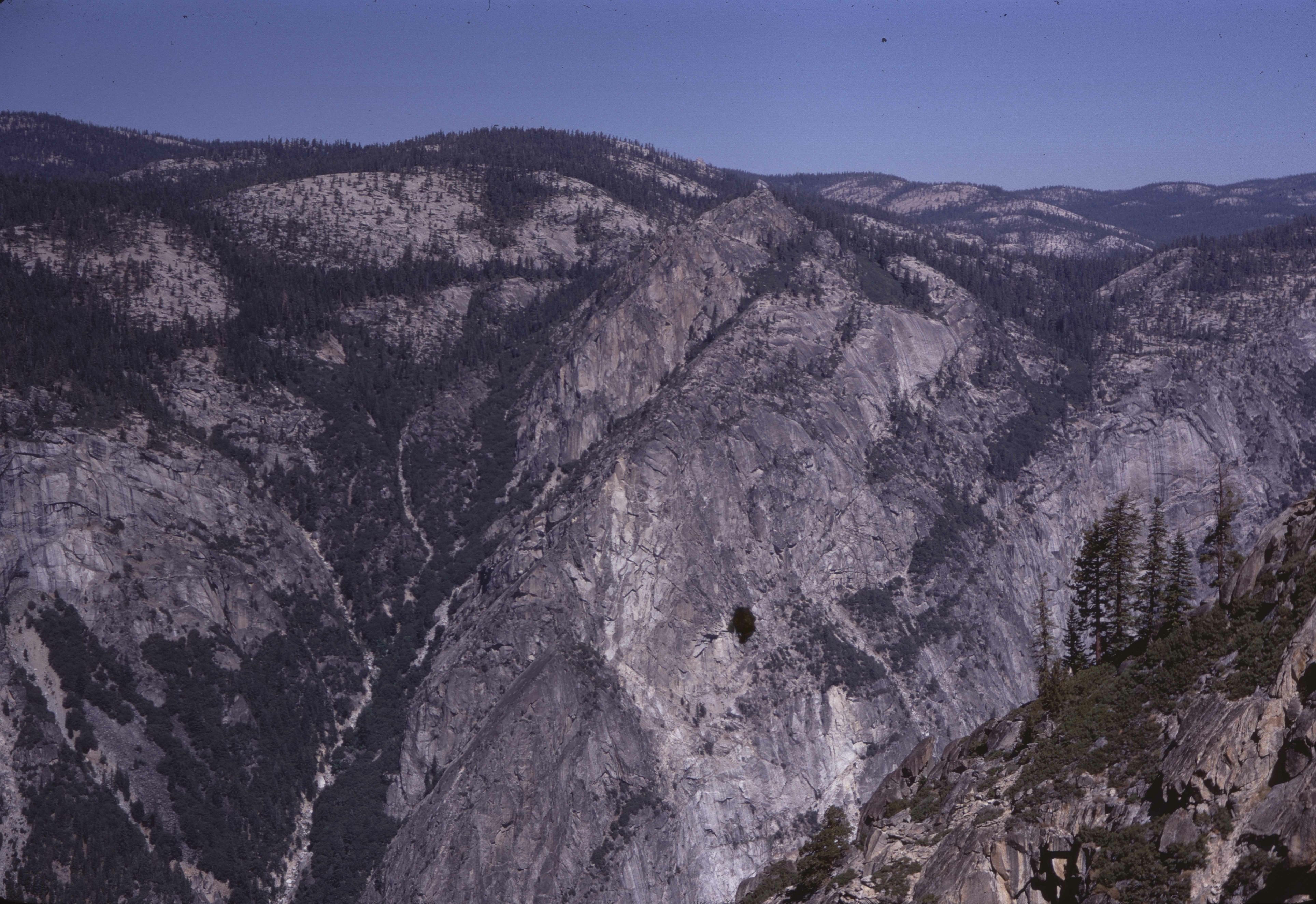Three Brothers Jointing Planes. Nancy Baggott. Yosemite Original. Copyright Unknown. D-3-C-3. [Geology - Rocks and Minerals]. C-03-03-105.