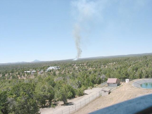 Photos of white smoke indicating start of the fire on the first day of Long Mesa Fire, Mesa Verde National Park, July 29, 2002